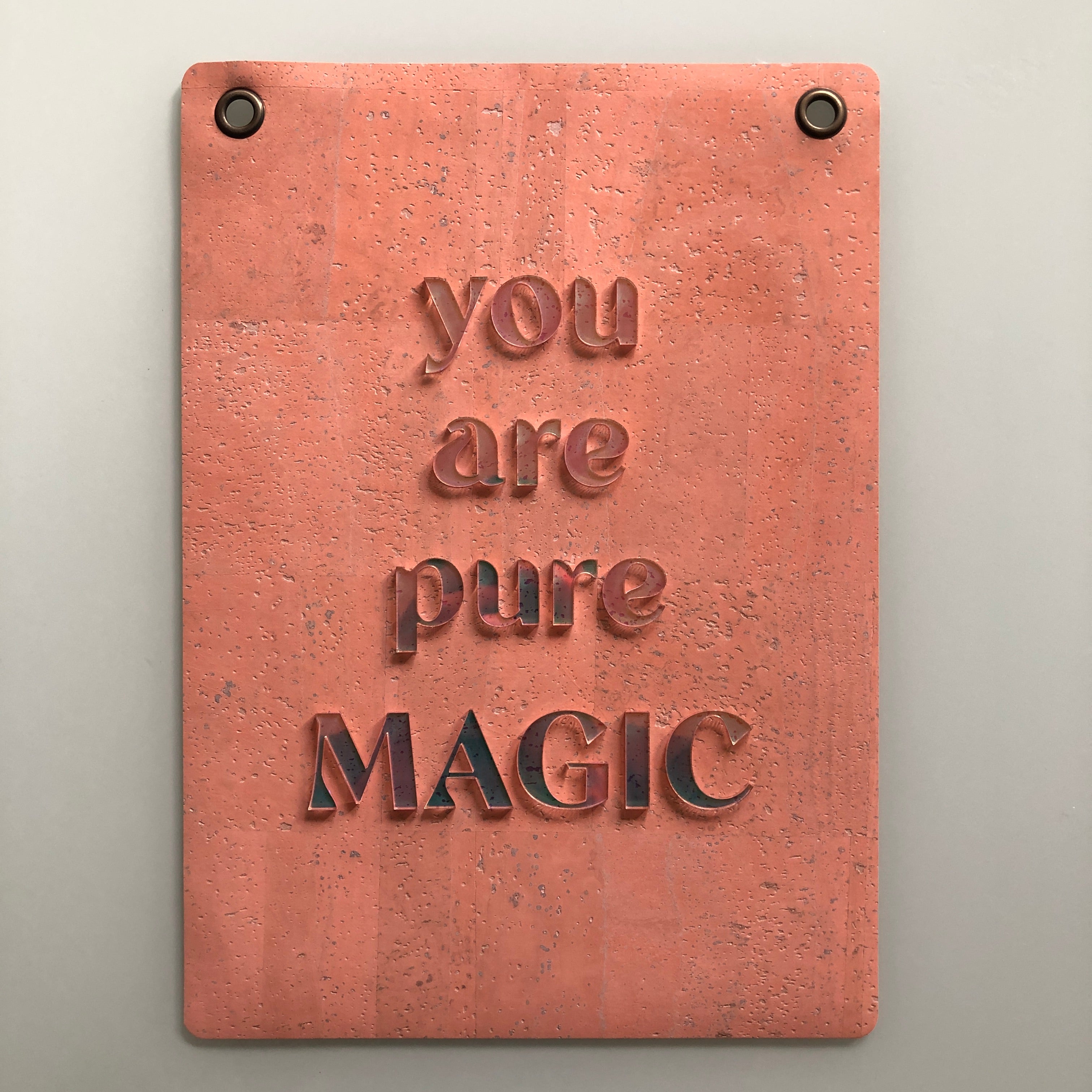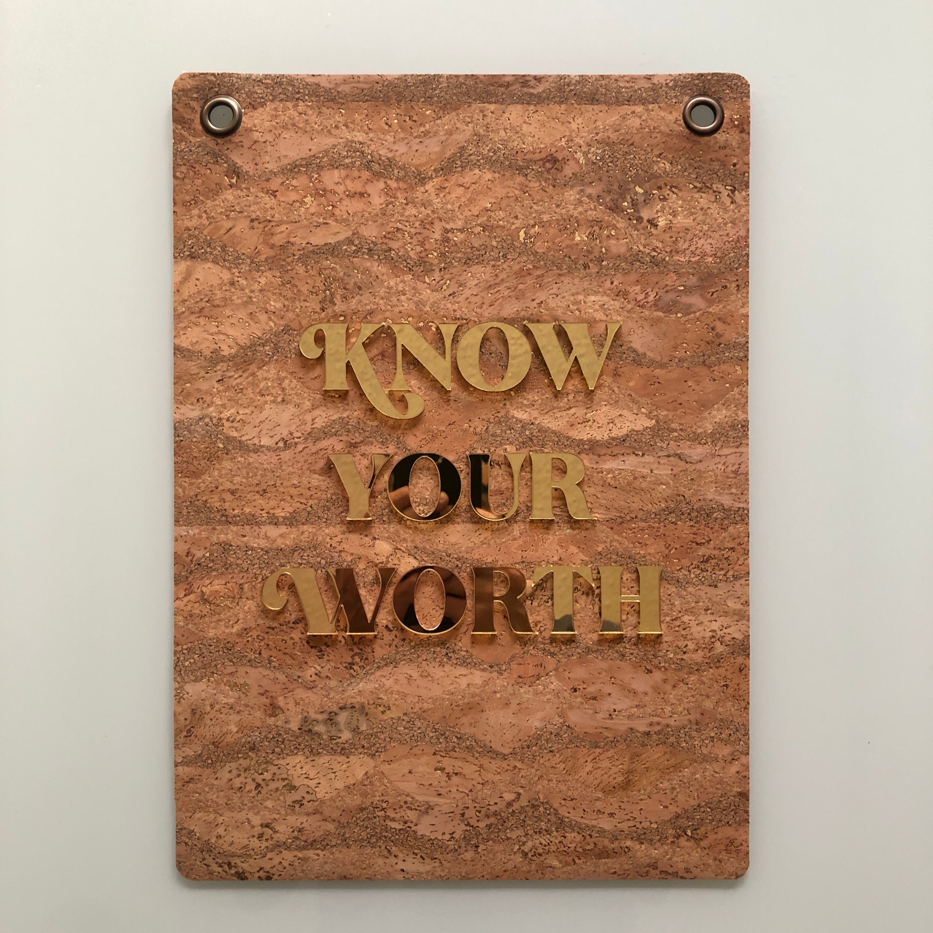 Soft to the touch, with a background of super luxe cork fabric, these affirmation have reflective or mirrored letters fixed to the front. When you say the affirmation, you can see yourself in the reflection. It's a powerful and subtle practice! Affirmation Banners make excellent gifts for self or others! Comes with antique brass hanging tacks.