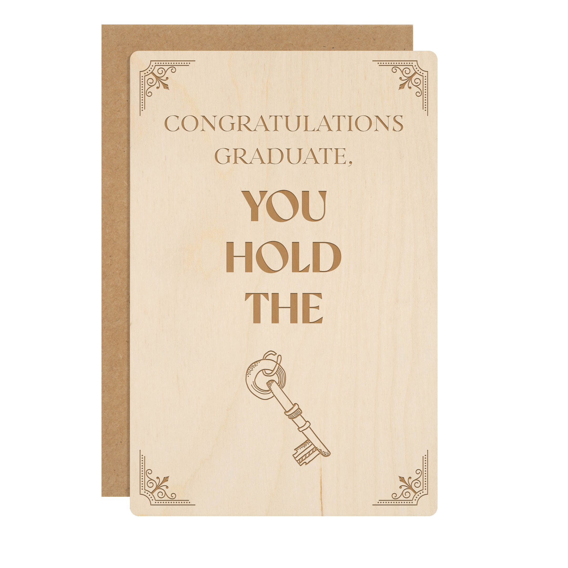 "Congratulations Graduate, You Hold the Key" Wood Card