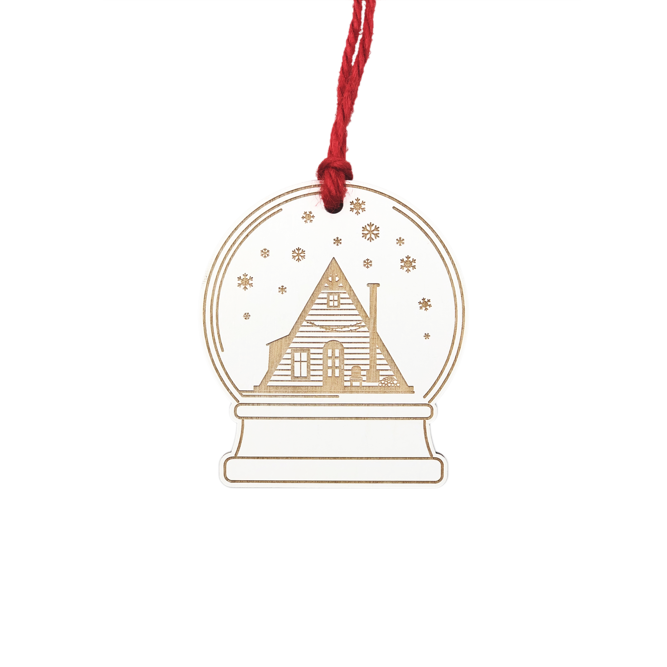 Bring some holiday cheer to your next Christmas tree with the Cozy A-Frame Snow globe Ornament!