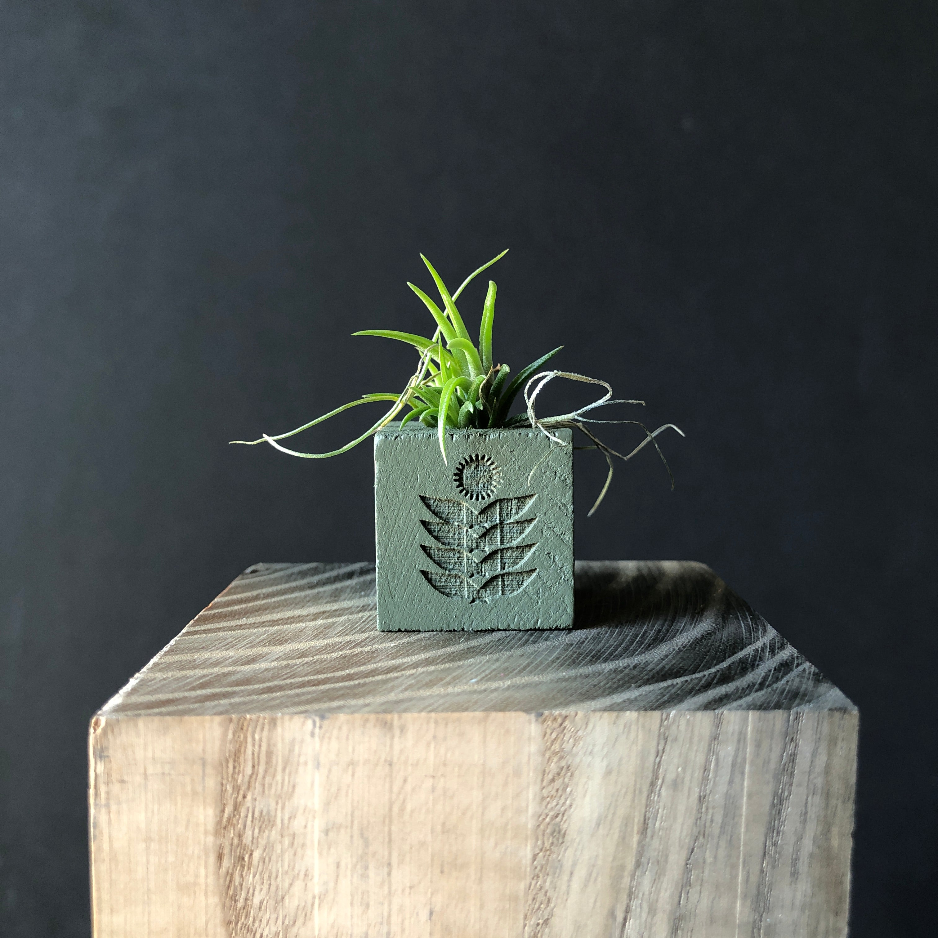 "Growth" Cube Air Plant Holder + Live Mini Air Plant, Green