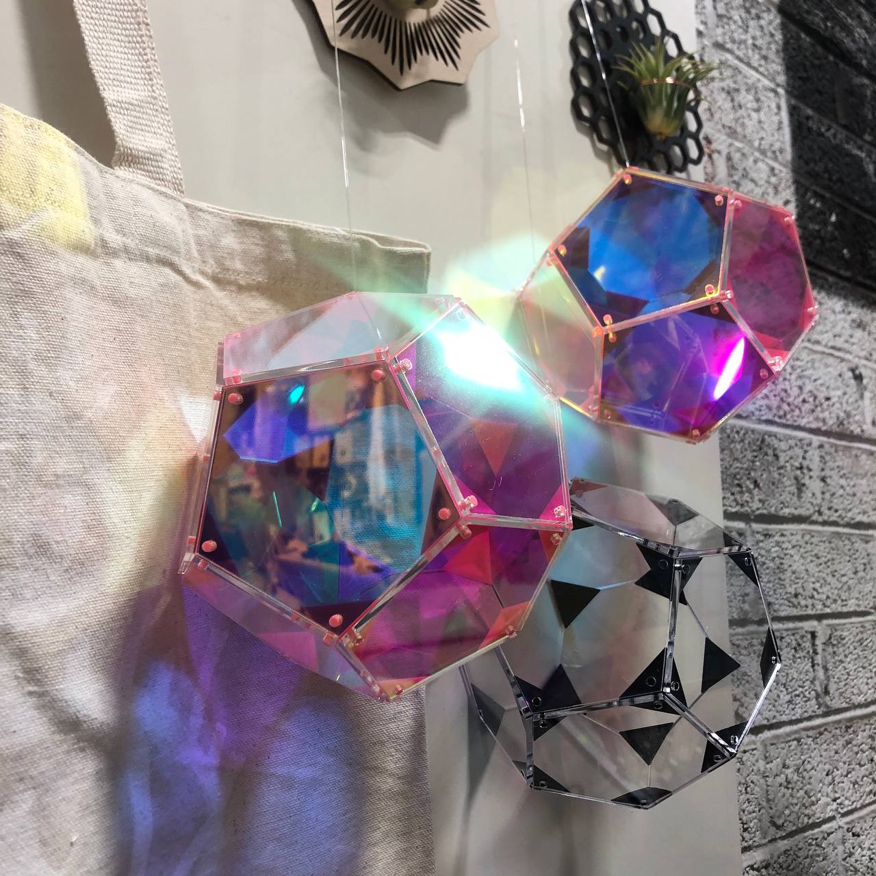 Add a touch of geometric magic to your space with our Iridescent Dodecahedron Light Catcher — a mesmerizing fusion of art, light, and mathematics. Crafted from shimmering, translucent acrylic panels, this twelve-faced polygon refracts sunlight into a dazzling spectrum of colors, casting ever-changing rainbows across your room.