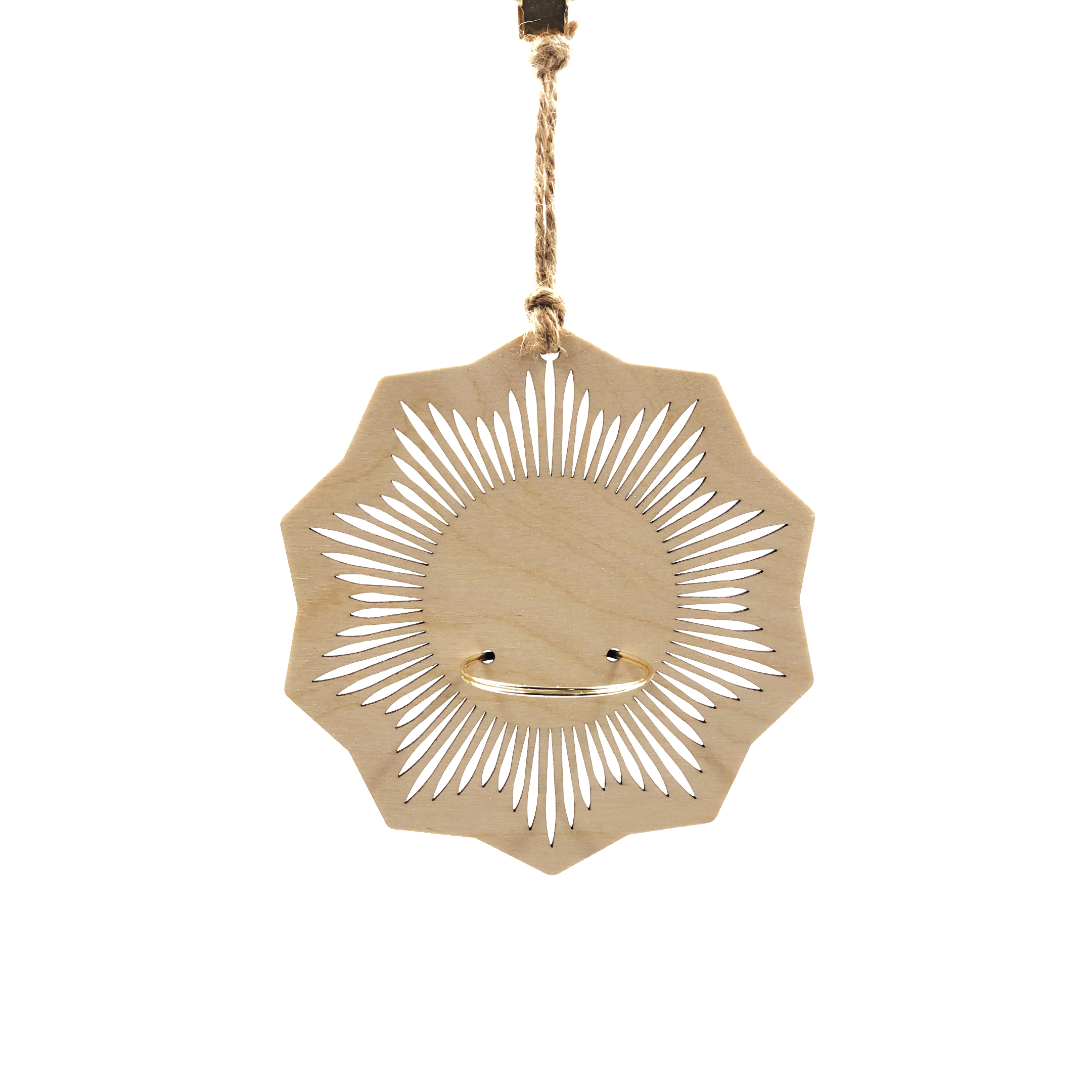 Materials: Natural Wood, Gold Wire, Jute String